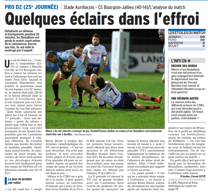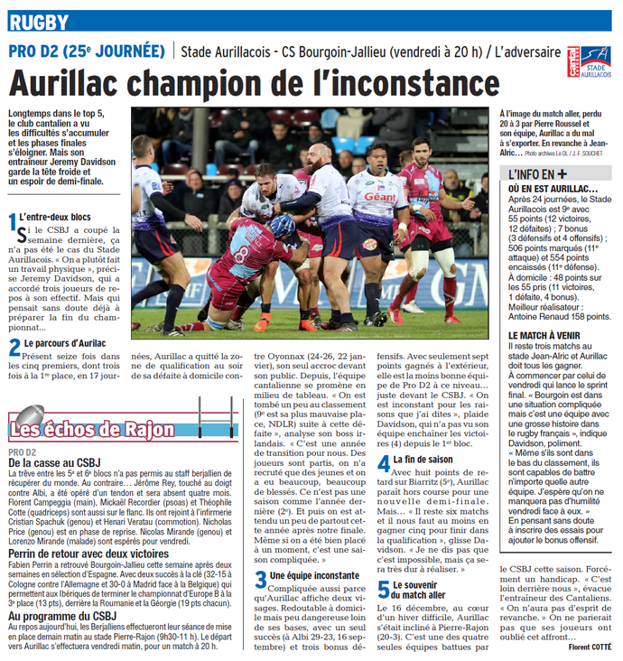 Déplacement à Aurillac: tarifs 35€ adherents et 45€ pour les autres